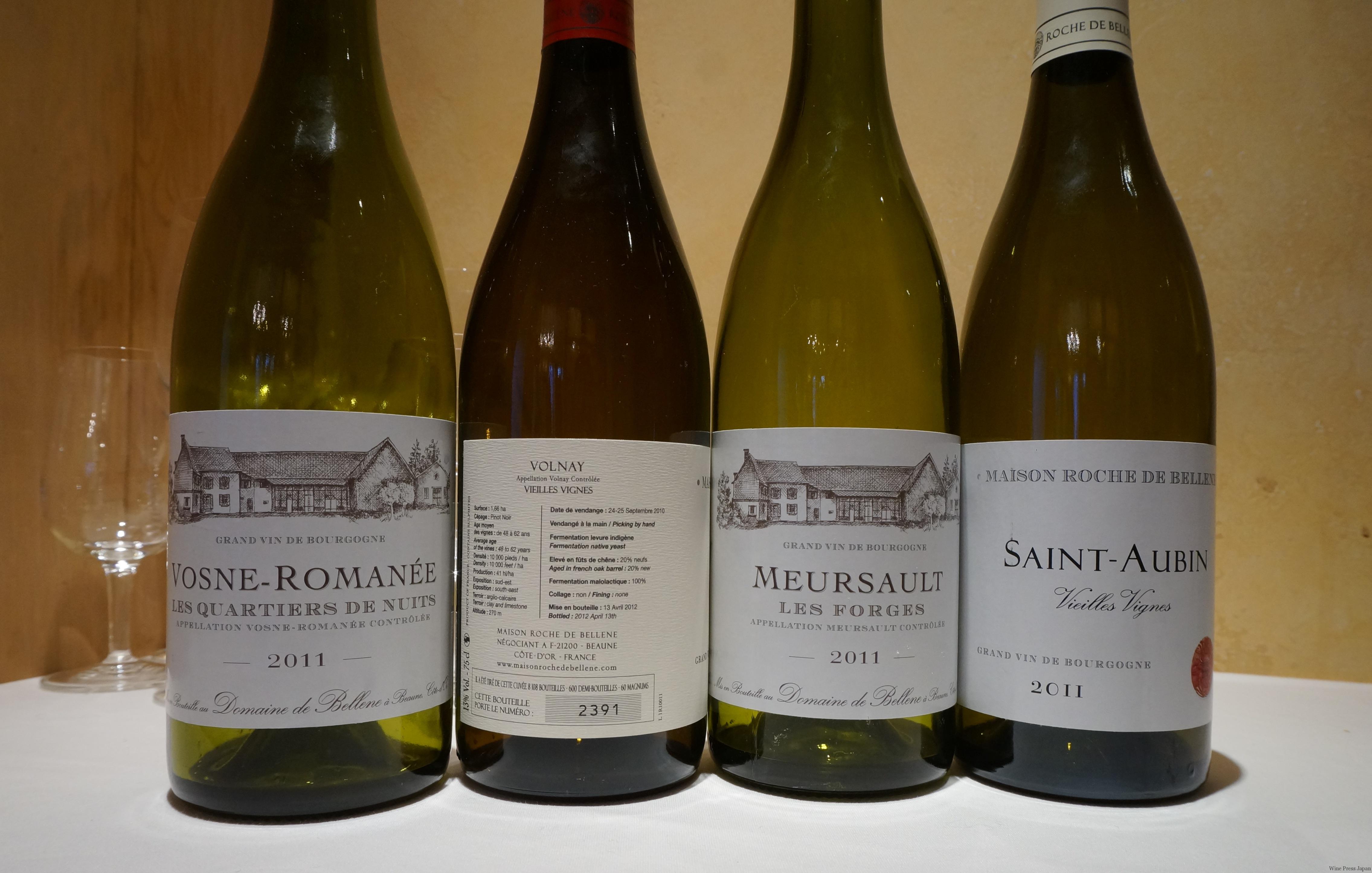 メゾンとドメーヌの白と赤、それぞれ1種類ずつ味見させていただきました。白はメゾンの「サントーバンVV 2011」とドメーヌの「ムルソー・レ・フォルジュ2011」。いずれもフレッシュ感やバランスよさが印象的で、特にムルソーは本当にピュアなイメージです。重さはなく、新樽100%とはまったく思えませんでした。赤はメゾンの「ヴォルネイVV 2010」とドメーヌの「ヴォーヌ・ロマネ・レ・カルティエ・ド・ニュイVV 2011」。前者が静かに立ちのぼる香りと清楚な味わいなのに対し、後者は華やかなハツラツとした香りで、とてもなめらかな触感とソフトな味わい。実に綺麗な仕上がりです。ちなみに「VV」とはヴィエイユ・ヴィーニュ=古樹のことで、法律で「樹齢何年以上」という縛りはないのですが、ニコラは55年以上のものに表記すると決めています。