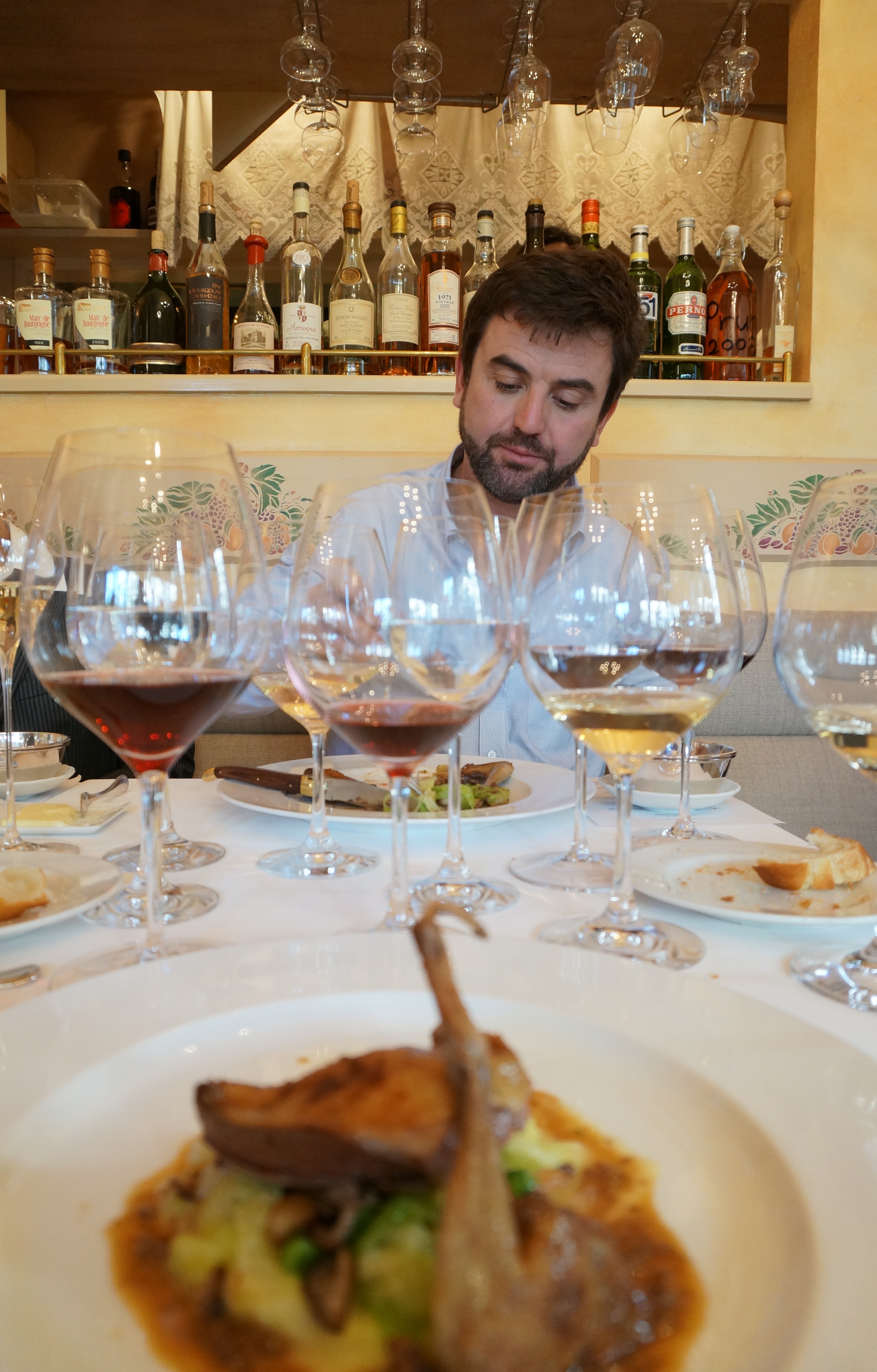 - 赤ワインに「ブレス産の仔鳩のロースト」。