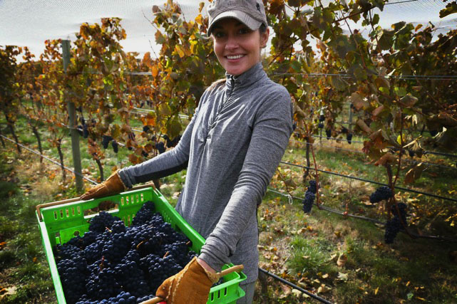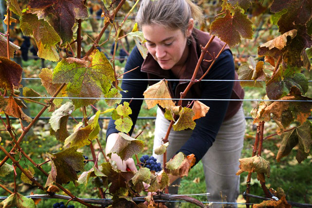 - 小さな平たいカゴで収穫。ブドウが潰れないで醸造所まで到着できます。