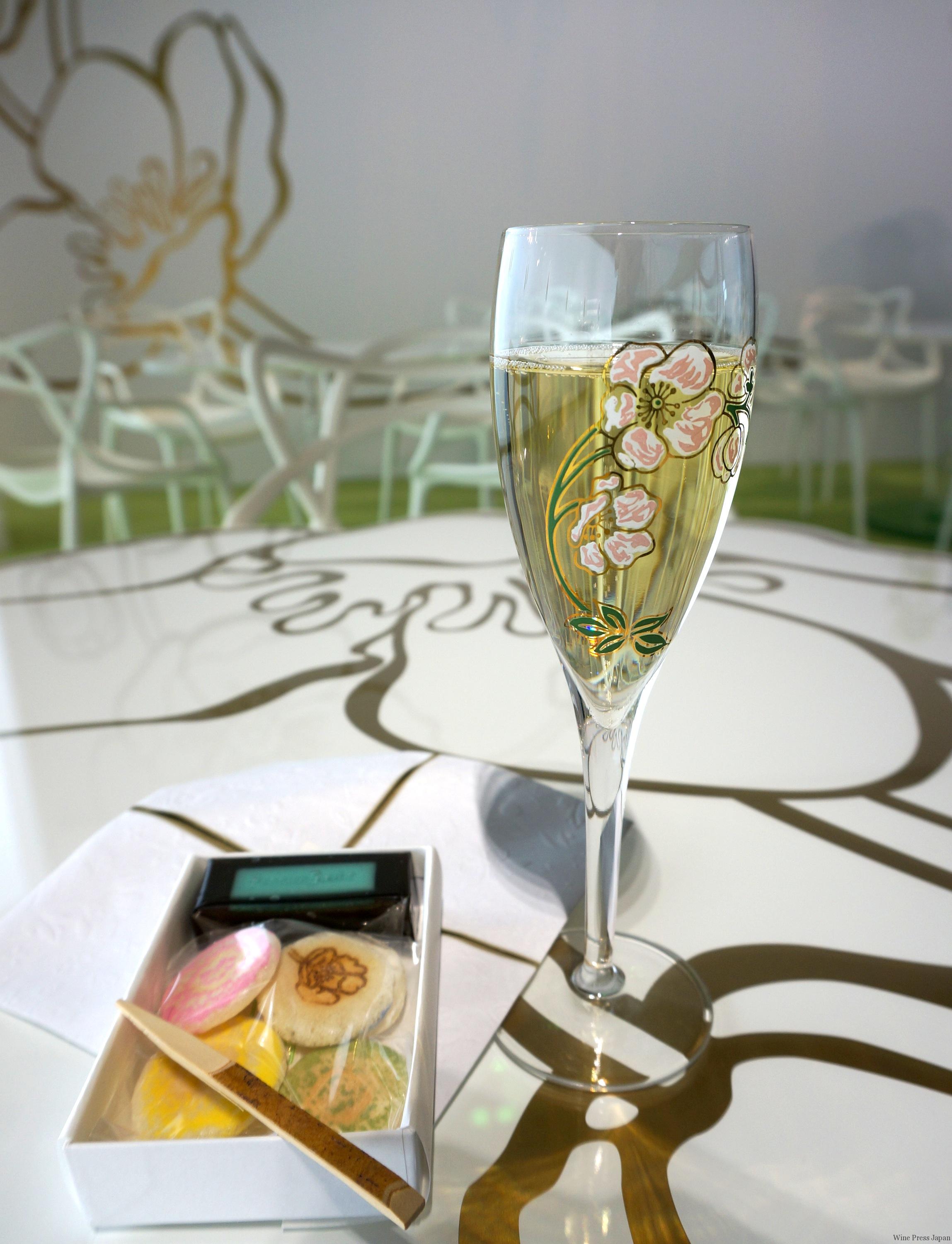 ちなみに四角いものは、風味のよい黒糖の羊羹でした。これにもペリエ ジュエの名が刻まれていました。小箱に入っているので、一度に食べるのは、、、という場合は持ち帰れます。和菓子の種類は、シャンパーニュの銘柄に合わせてセット内容が違うようですから、それぞれの組み合わせを愉しめますね。