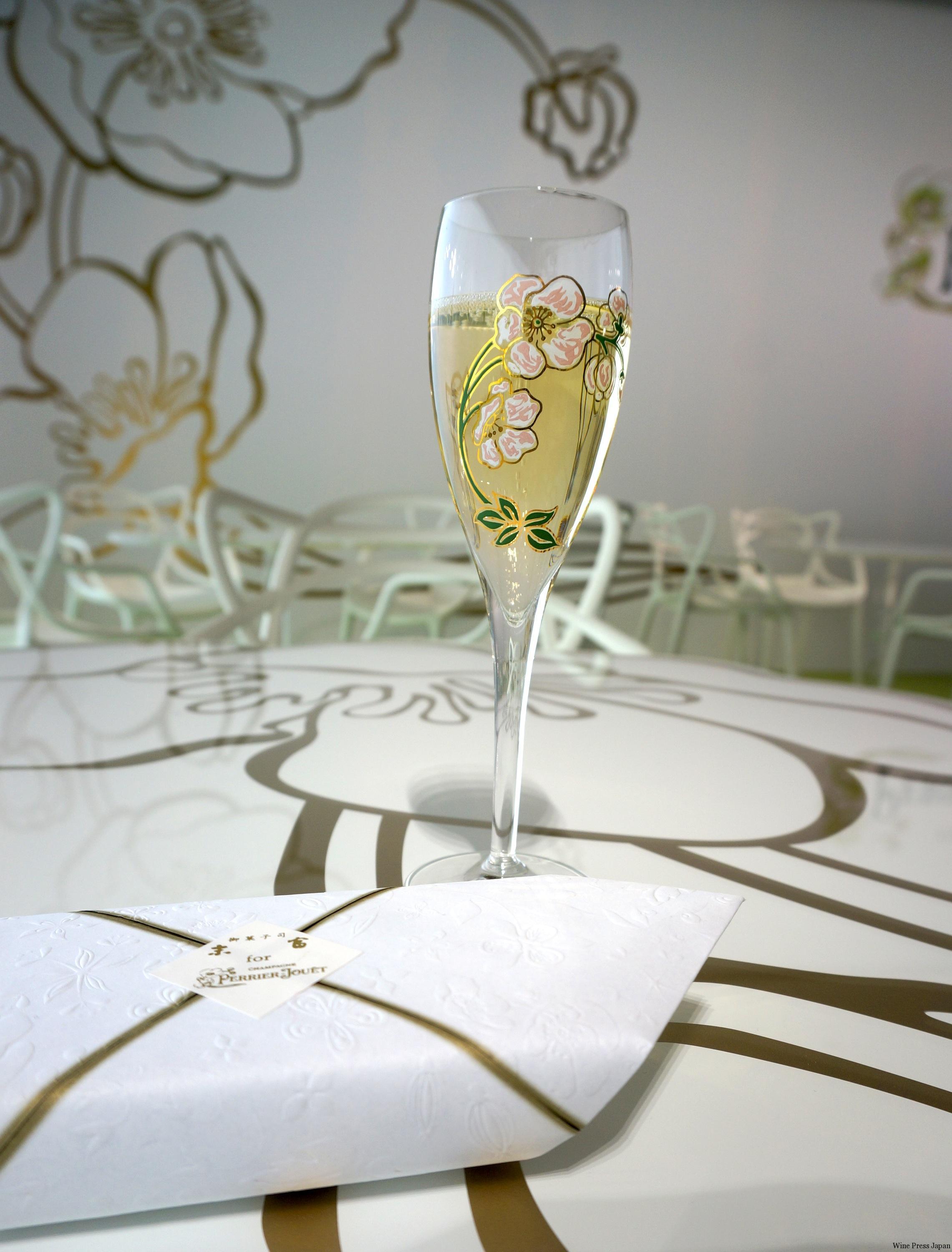 ペリエ ジュエのプレステージ・キュヴェ「ベル エポック」のボトルを飾る美しい花は、エミール・ガレが1902年に描いたアネモネです。それは、ガレが当時ペリエ ジュエの繊細で可憐な味わいから日本の「秋明菊」をモチーフに、ボトルに表現したといわれています。そこで生まれたのが今回の「和」とのマリアージュを愉しむポップアップバー。「Life is Art 〜さ、アートを召し上がれ〜」という企画の第一弾ということです。