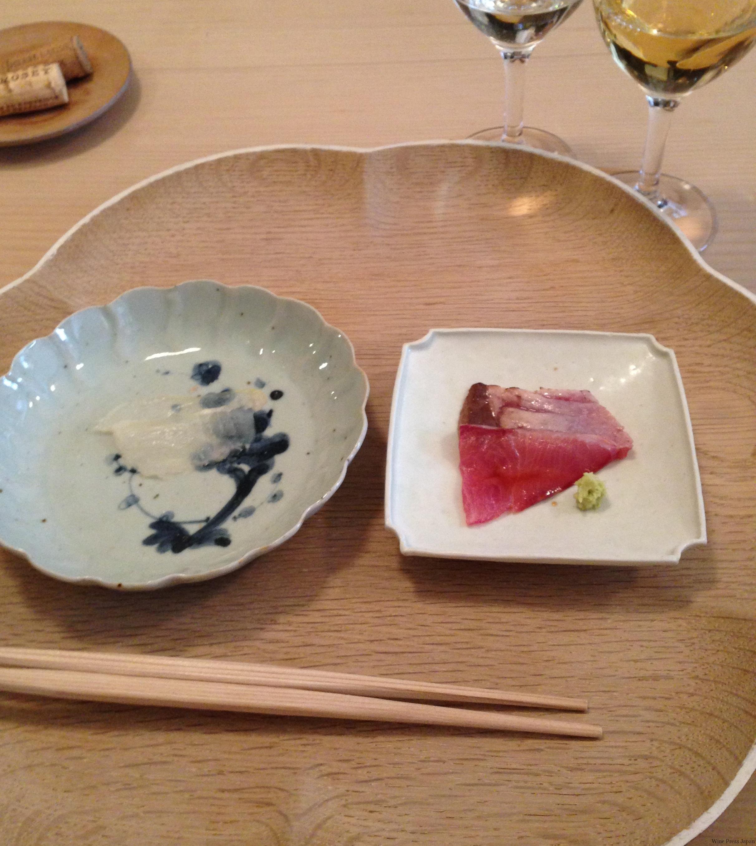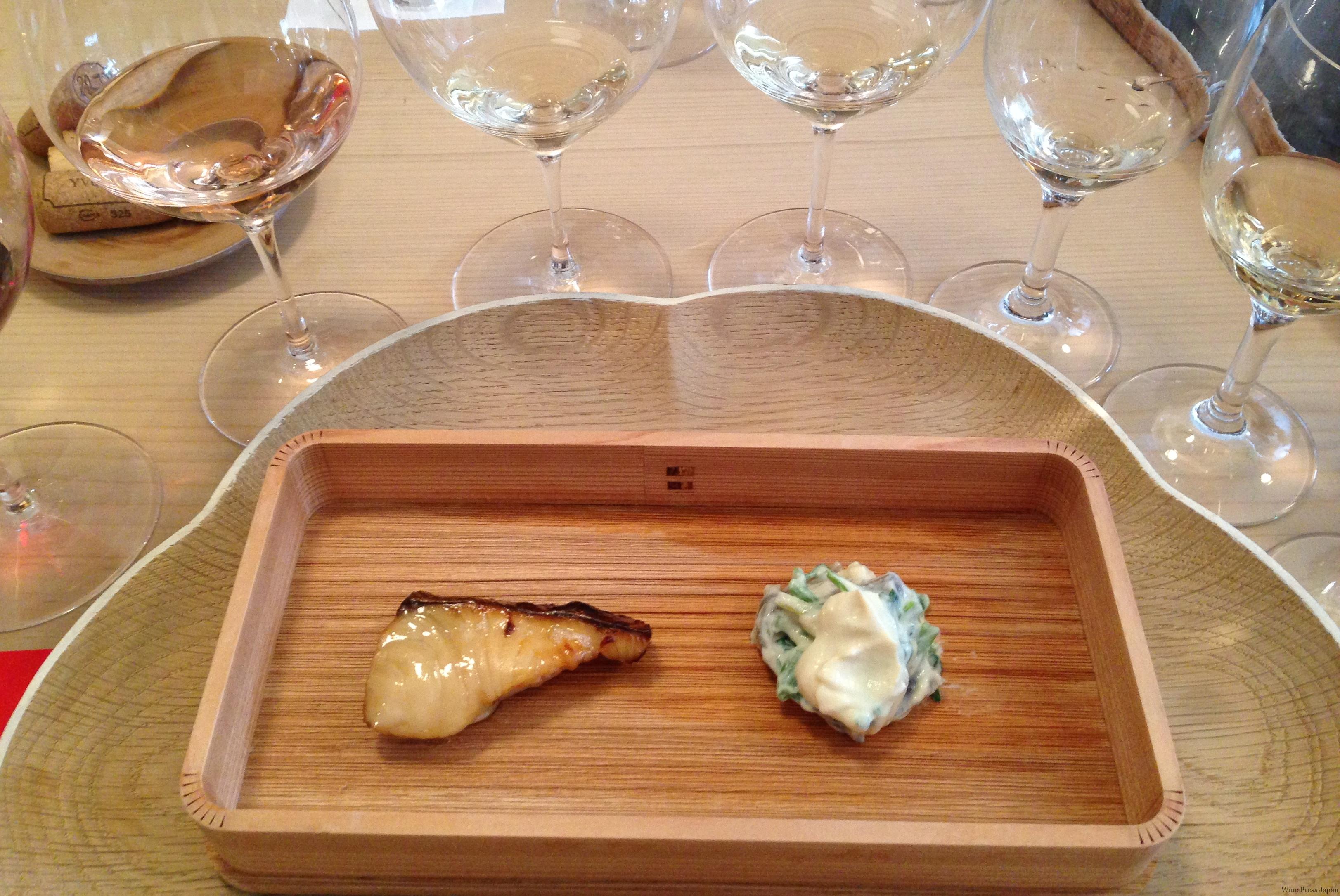 - 「シャトー・ル・ロゼー」のロゼ「ニゼーレ2012 」と「ピノ・ノワール2011」には、鰆味噌柚庵 芹と春子椎茸白和えの組み合わせ。