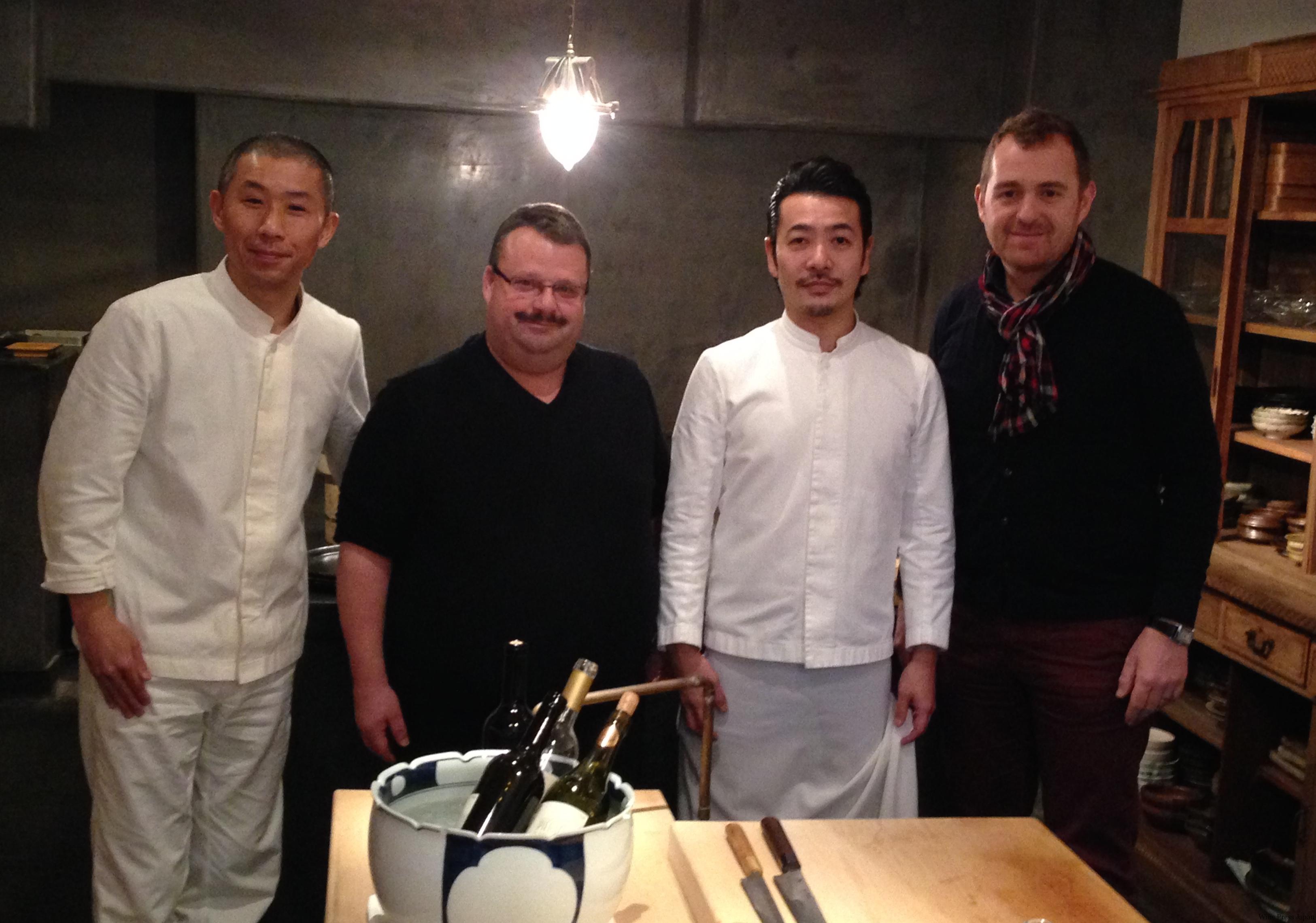 - 白衣のお二人が「八雲茶寮」のシェフ(左)とマネージャー。そしてベルナール・カヴェさん(左から二人目)とブノワ・リブレさん。