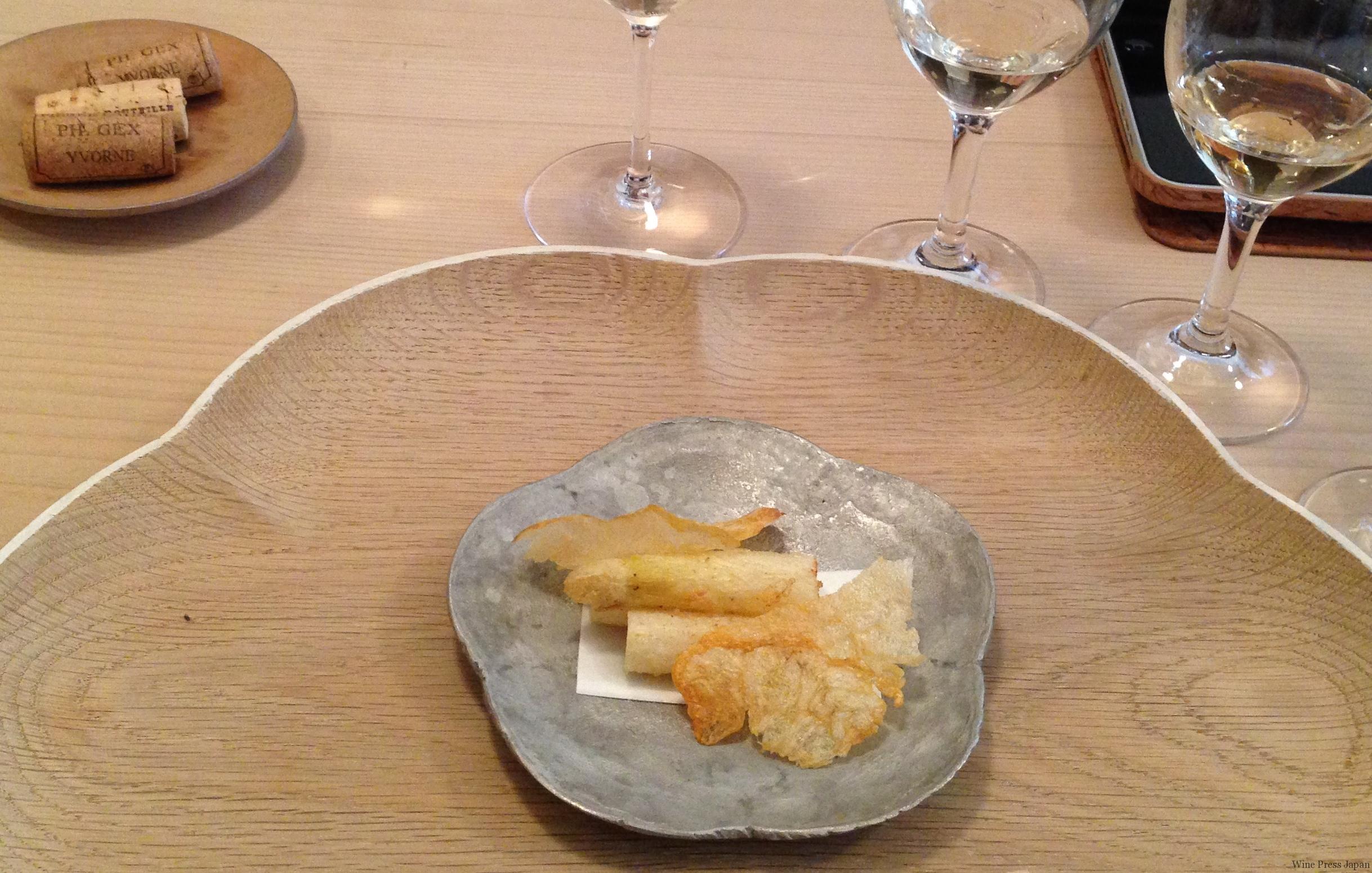 ヴォー州のワインを目黒区の「八雲茶寮」の食事と合わせてみよう、という試みがされたのですが、特にホワイトアスパラの天ぷらと「オロン2012」、海老煎餅と「クロ・デュ・クロワゼ・グリエ2012」が、すばらしい組み合わせで驚きました。ワインそのもののインパクトが強くて主張する、というよりも、お料理に寄り添ってお互いに引き立て合いながら別の世界をつくっていく、という感じでしょうか。素敵でした。ただ、同じ料理を作るのは家庭では困難ですから、真似してみる他にこの組み合わせを再現する手立てはありませんけれど。