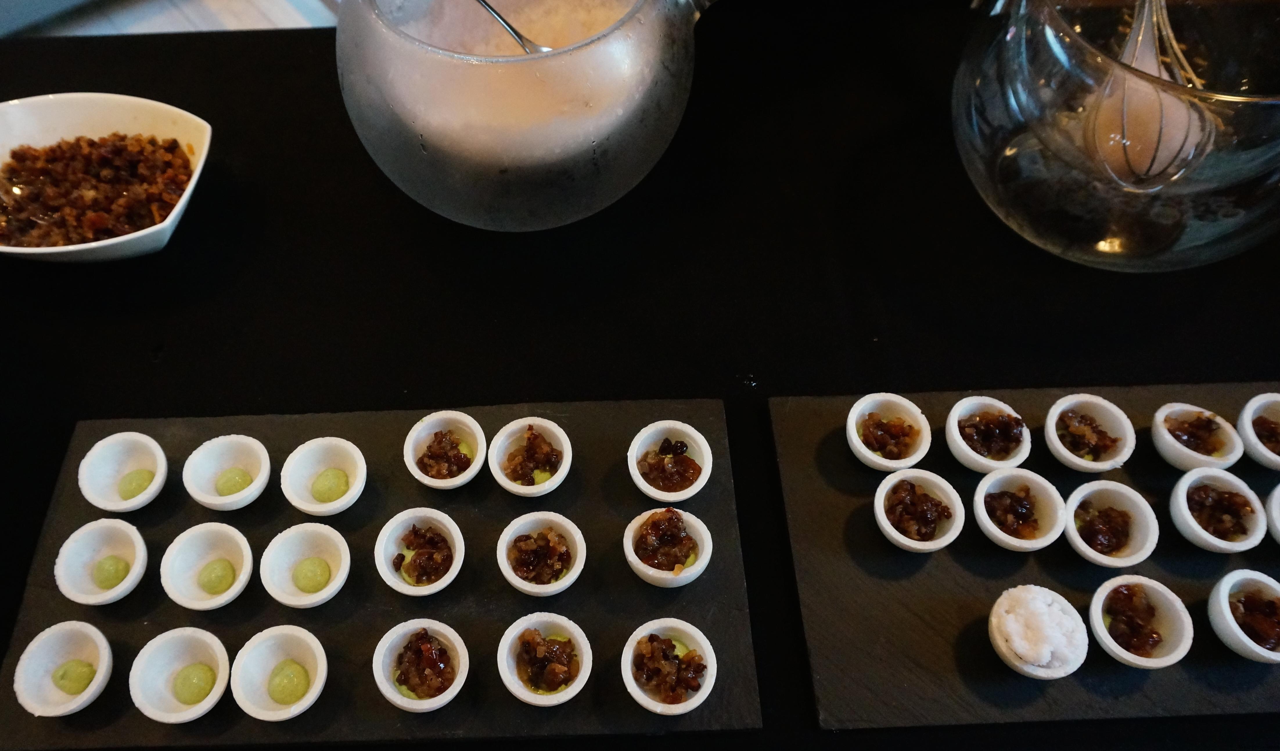 - 贅沢にも、ミラヴァル・ロゼのシャーベット! クレソン・クリームに、セロリとレーズン、そしてシャーベットをのせたおつまみでした。