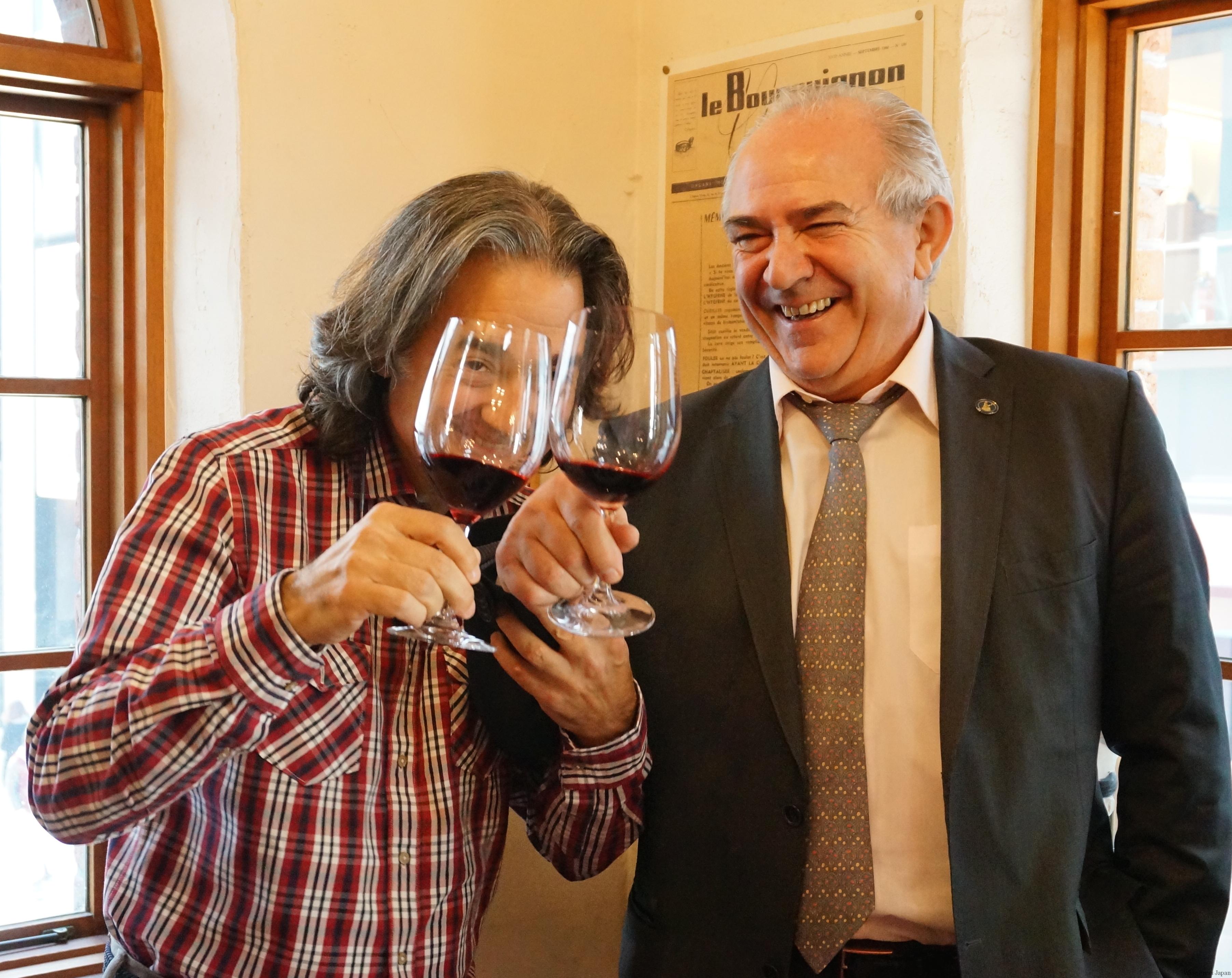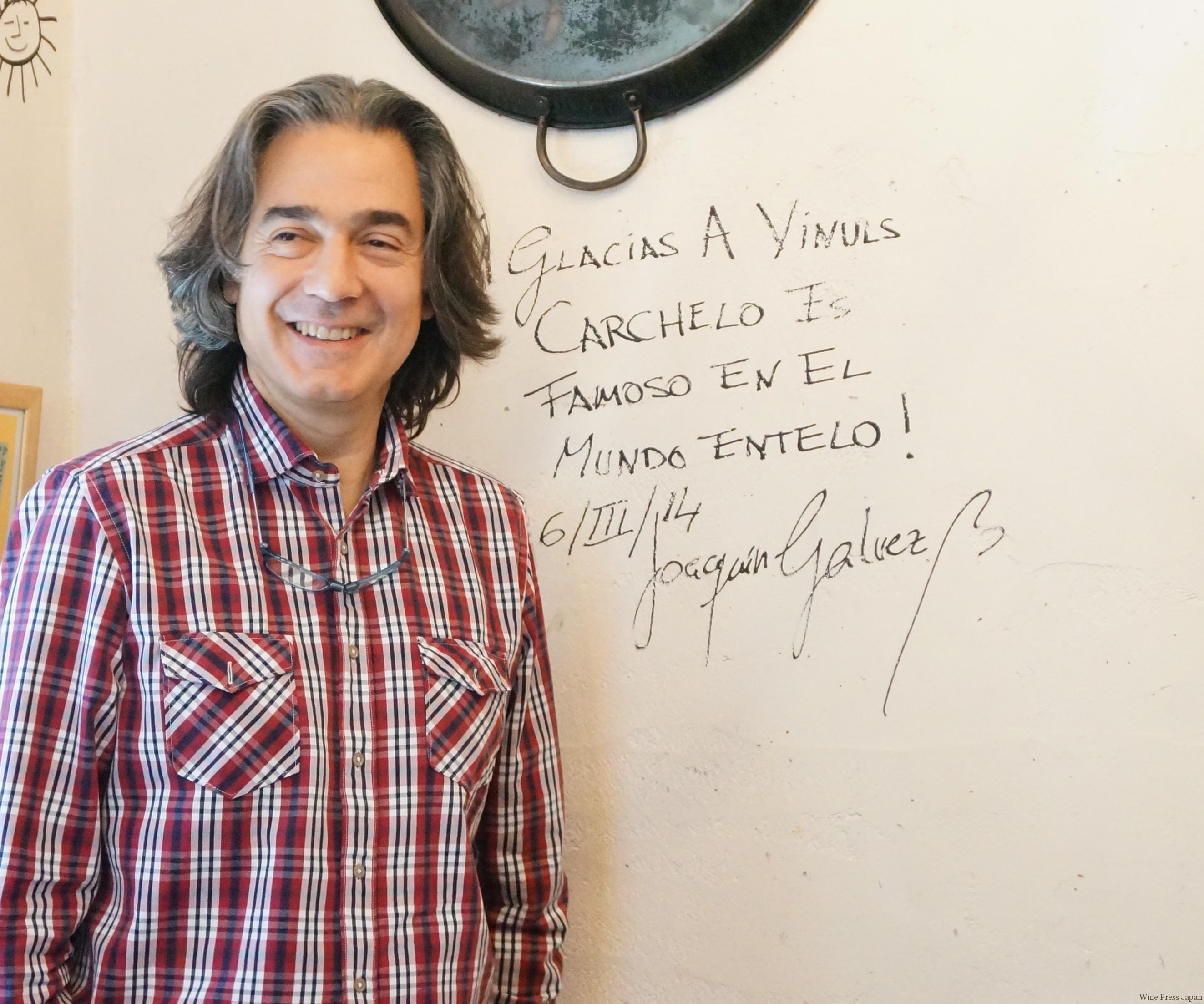 - 醸造を担当するホアキン・ガルベス(左)はチリ出身で、13年前にロンドンで行われたタスマニア産ワインの試飲会でこのワイナリー「ボデガス・カルチェロ」の輸出部長カルロス・ロホ(右)との出会い、それをきっかけにフミーリャで仕事を始めましたが、その前にはカリフォルニアやアルゼンチンでもワイン造りを経験しています。