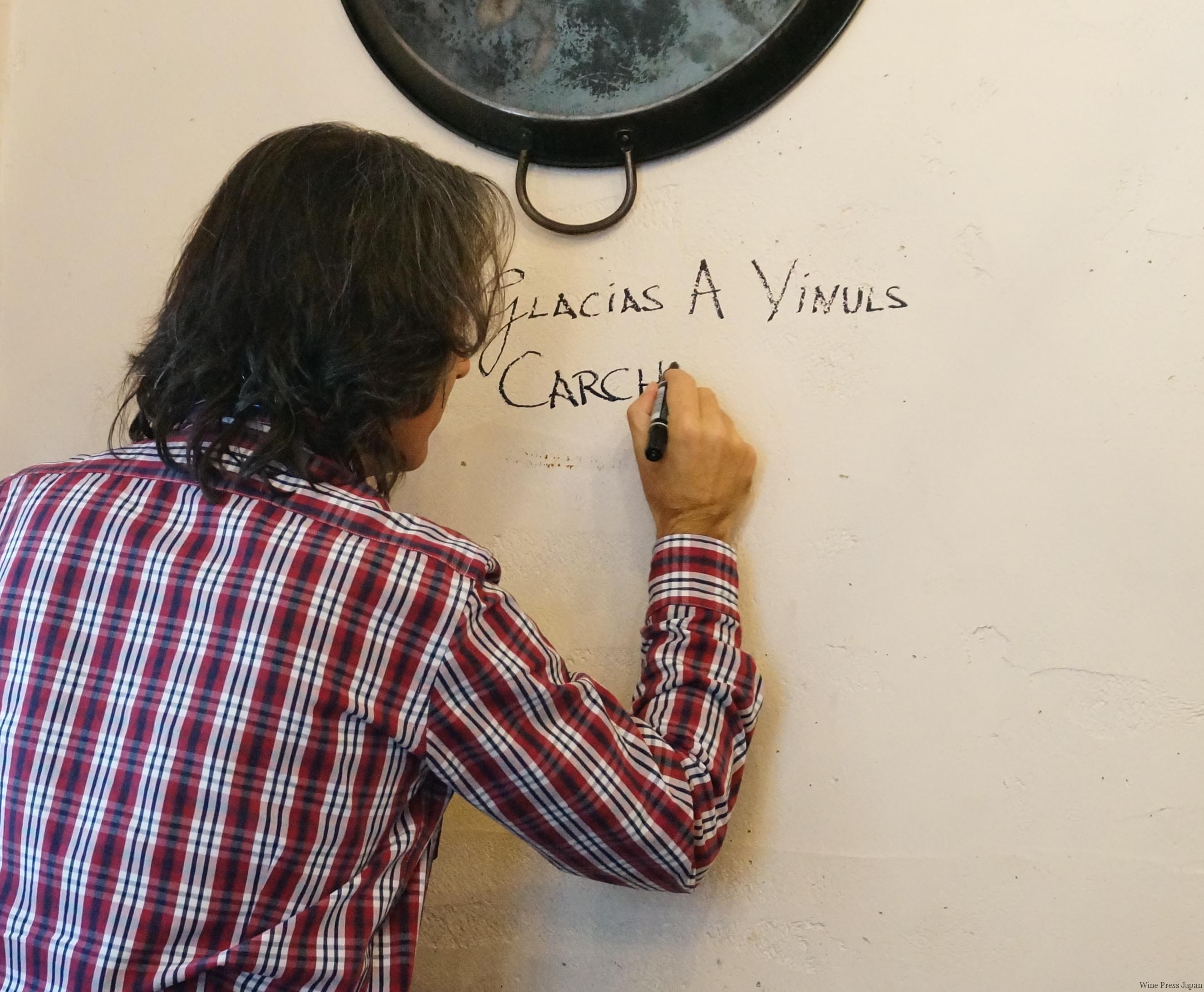 - 銀座のスペイン料理店「バニュルス」の2階右奥の壁にサイン中!