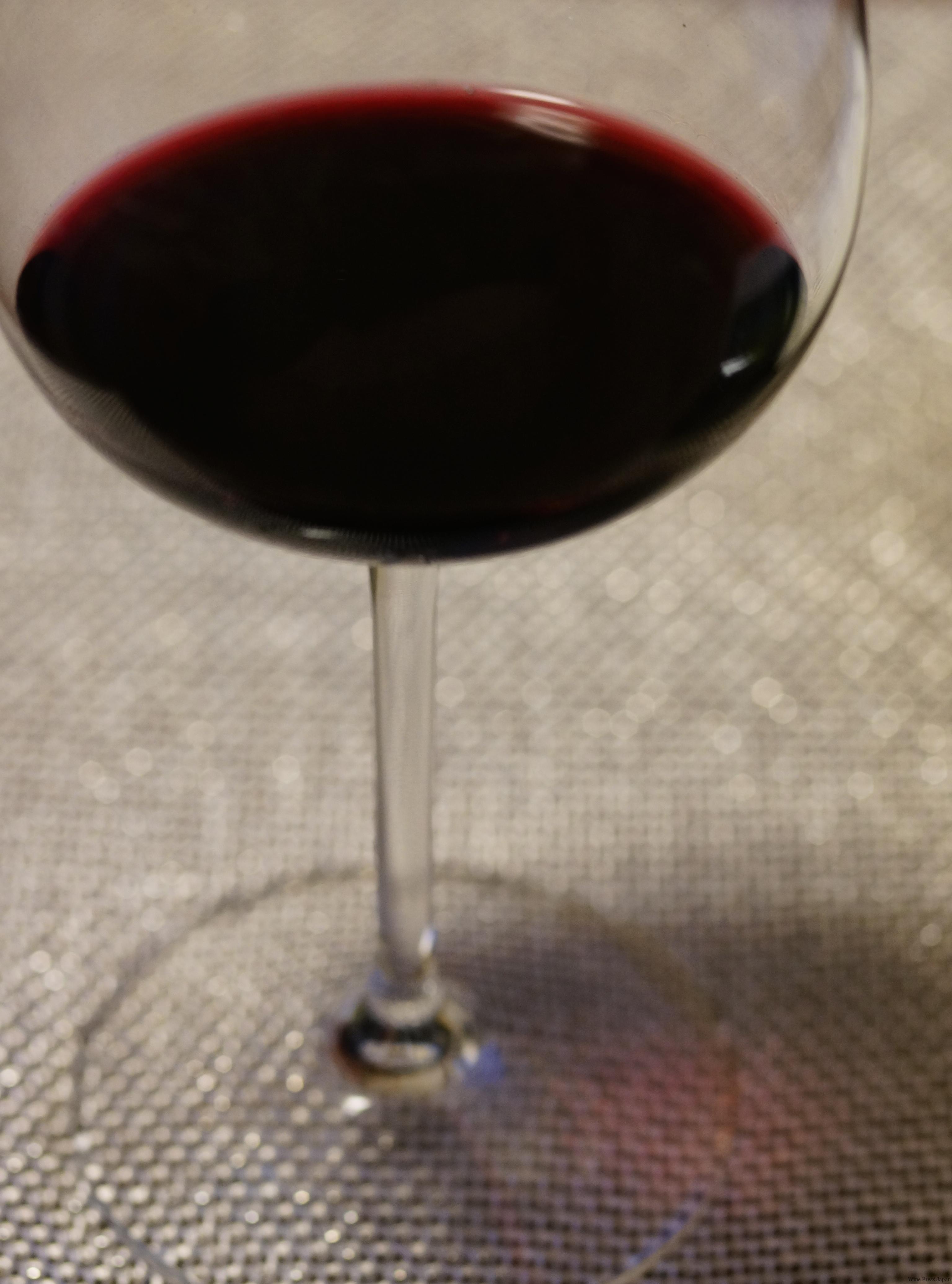 - 黒みがかった濃いルビー色なので、グラスの向こう側が見えません。