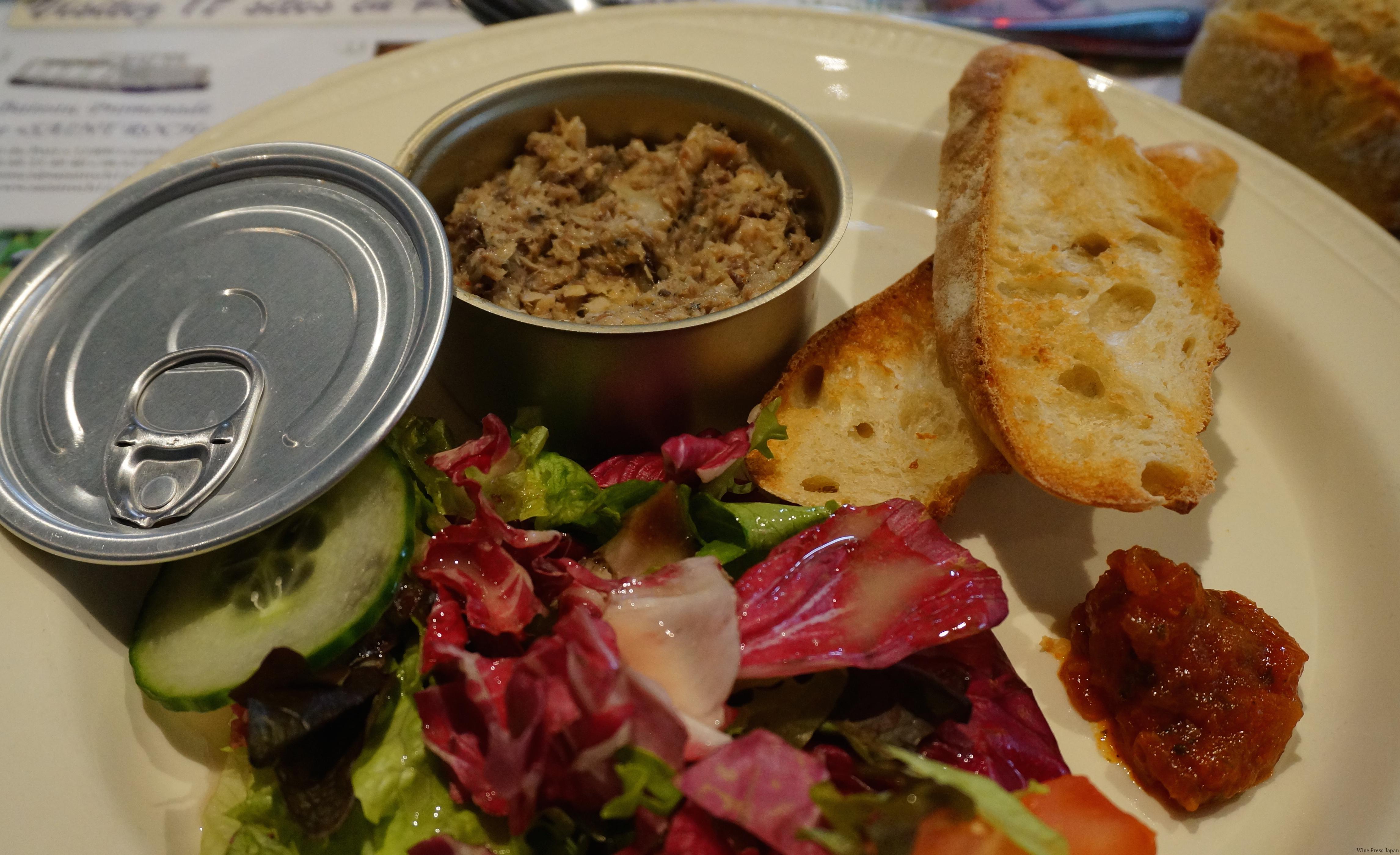 - ある日のランチの一皿目。缶の中に魚のリエット、というプレゼンテーションが面白かった! あ、味も美味でしたよ♪
