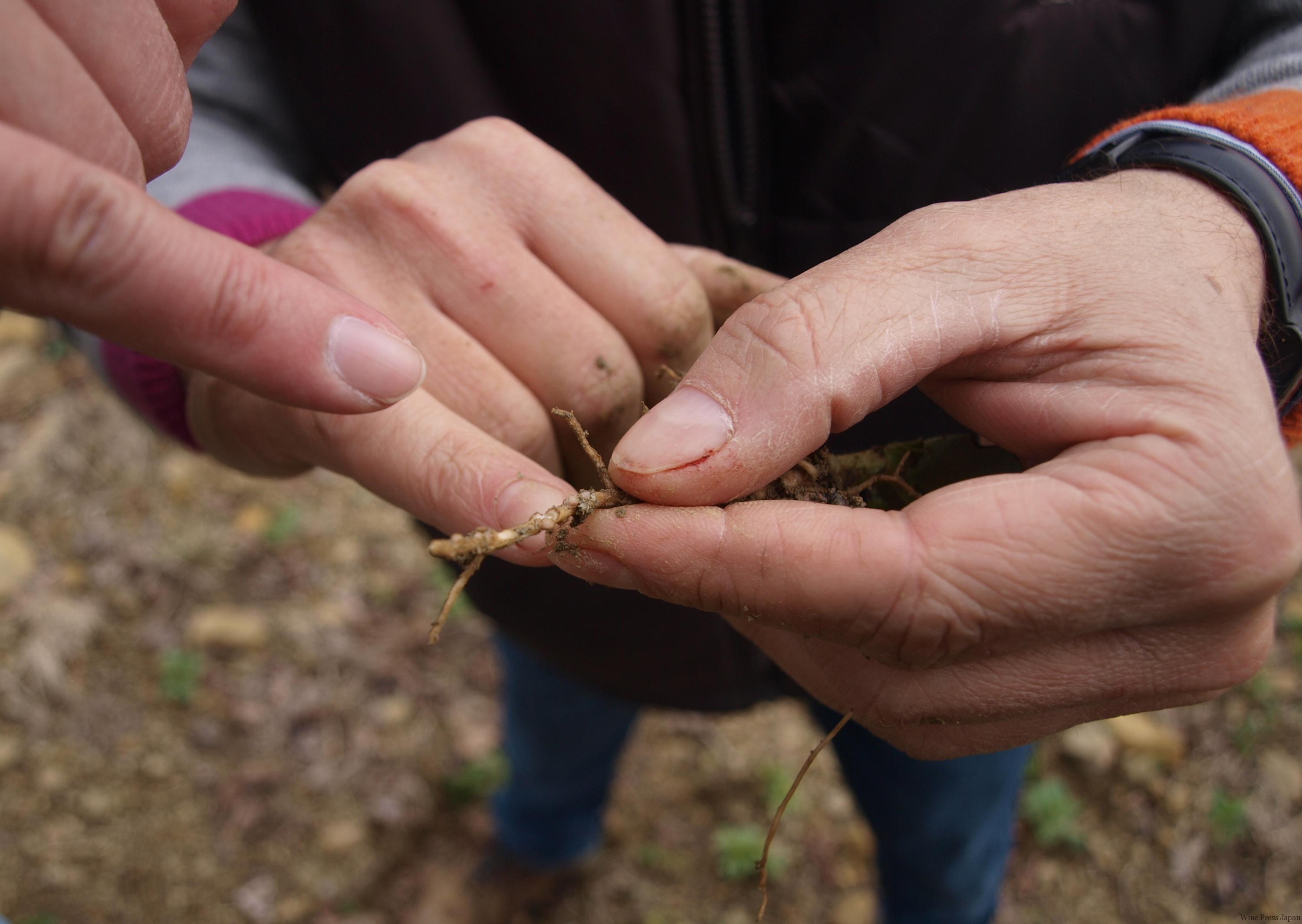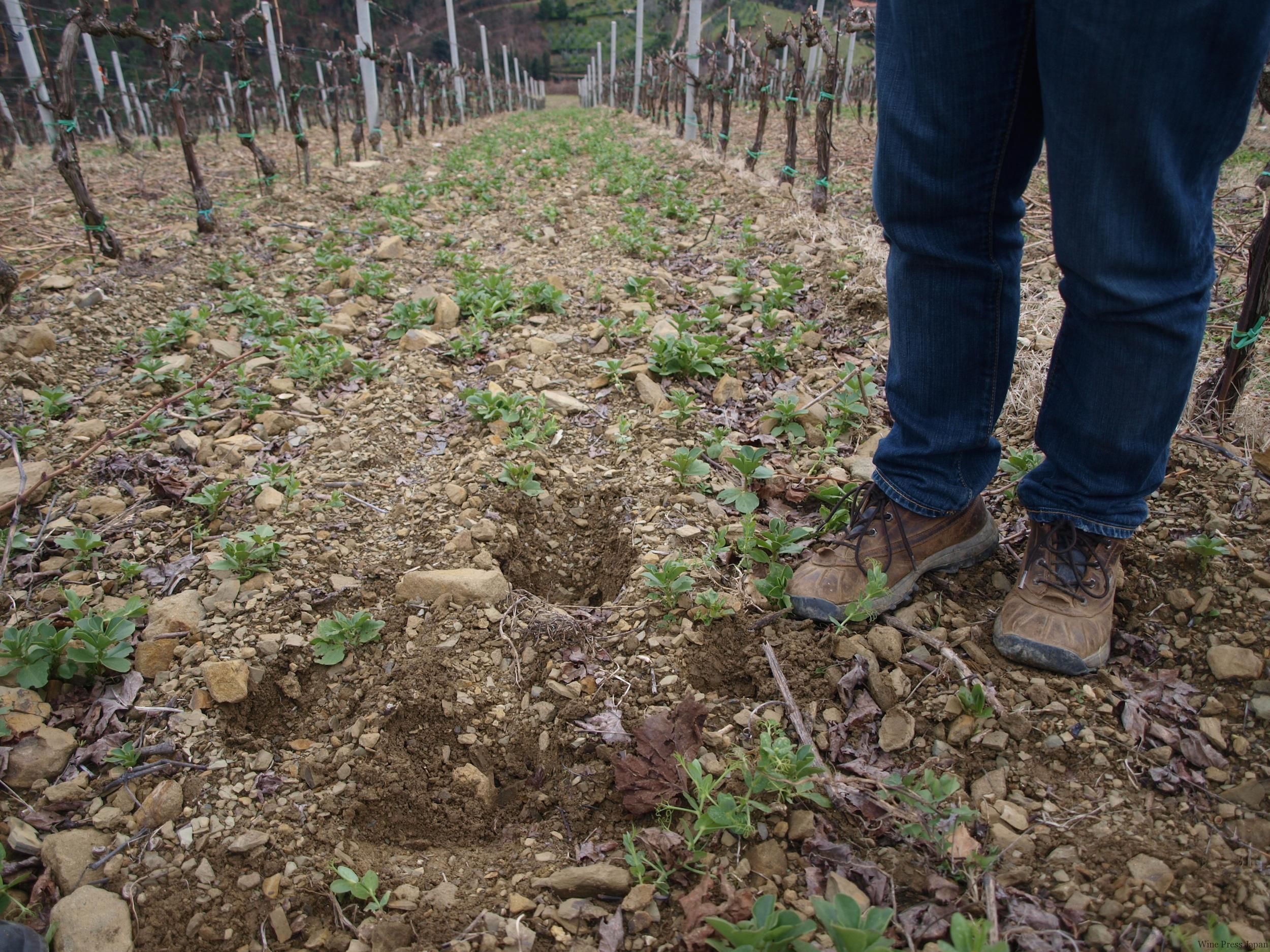 新ビオディナミでは、通常のビオディナミの有機肥料である牛の角も、動物のフンを使った堆肥も使いません。その代わりに、畑には30種類に及ぶ植物の種が蒔かれ、それぞれが重要な役割を果たしています。例えば、土壌に養分を与えるもの、土中の微生物を育むもの、天敵を寄せ付けない働きをするもの、受粉をすすめるためにハチを呼び寄せるもの、などです。「土中で微生物が働く、これは大切なことです。また、ぶどうの根が土中のより深くまで伸び、養分を吸い上げます。新しいビオディナミ農法を導入した後、健全で、土壌の特色がよく現れたブドウが収穫できています」と、フラジャコモ氏は、その成果を高く評価しています。また、醸造でも動物由来のもの、例えば清澄作業でよく使用される卵や乳製品由来のものはすべて排除したそうです。栽培から醸造に至るまで、すべてがベジタリアン、というわけです。