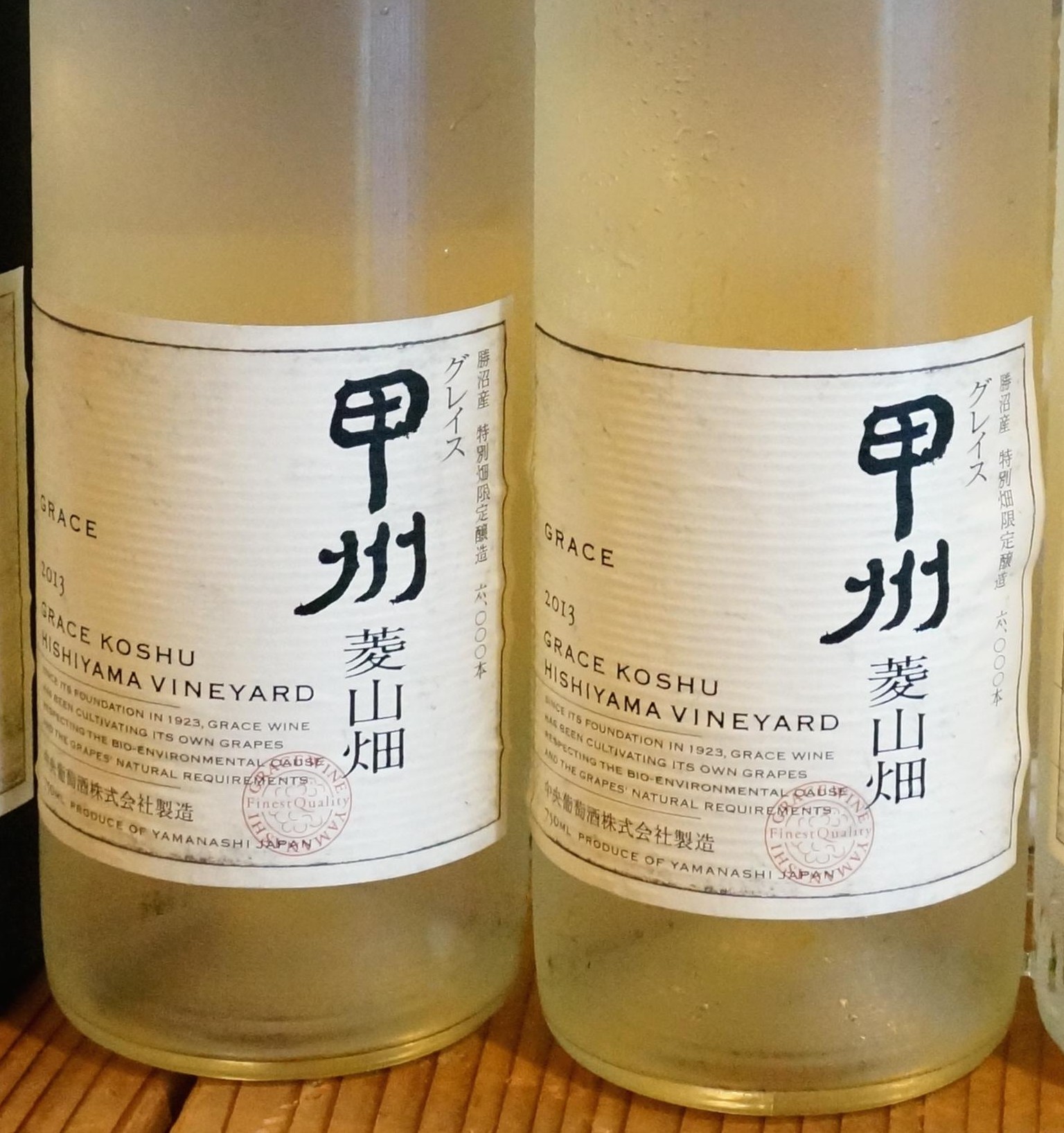 - 明野の垣根仕立ての甲州。2013年は一段と素晴らしいできでした。イギリスのDecanter主催のコンクールで「金賞」受賞の快挙! おめでとうございます!