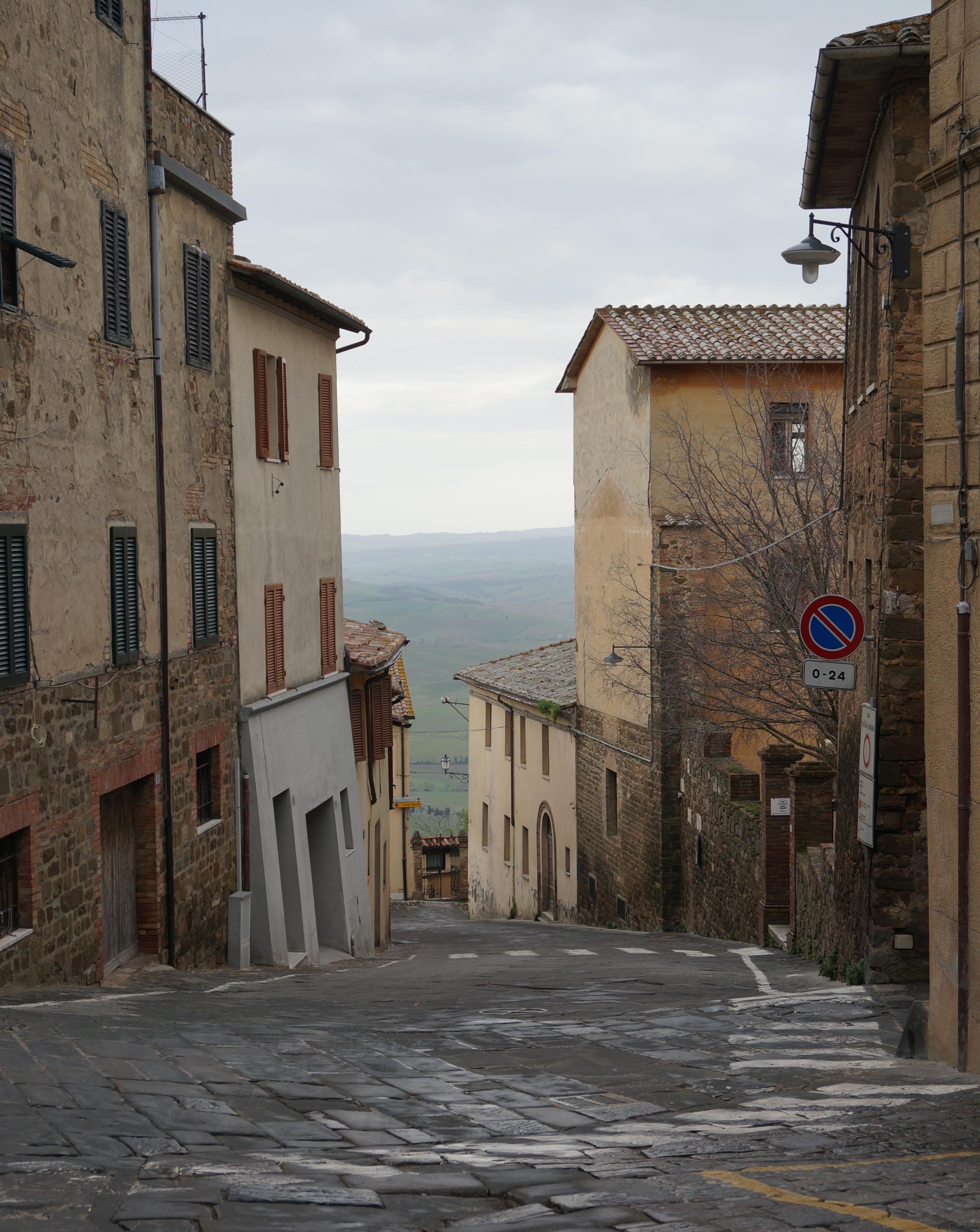 当時は複合農業が一般的で、穀物、ブドウ、オリーブ、果実、野菜など様々なものを扱っていたようです。そして、この広く指定されたヴァル・ドルチャの中に有名なワイン産地が含まれています。ブルネッロ・ディ・モンタルチーノで知られるモンタルチーノです。凝縮した力のある赤ワインからエレガントでまるでピノ・ノワールのような赤まで造り出す産地ですが、モンタルチーノの丘の頂にある街そのものは、とてもこぢんまりとした可愛らしい坂の街です。