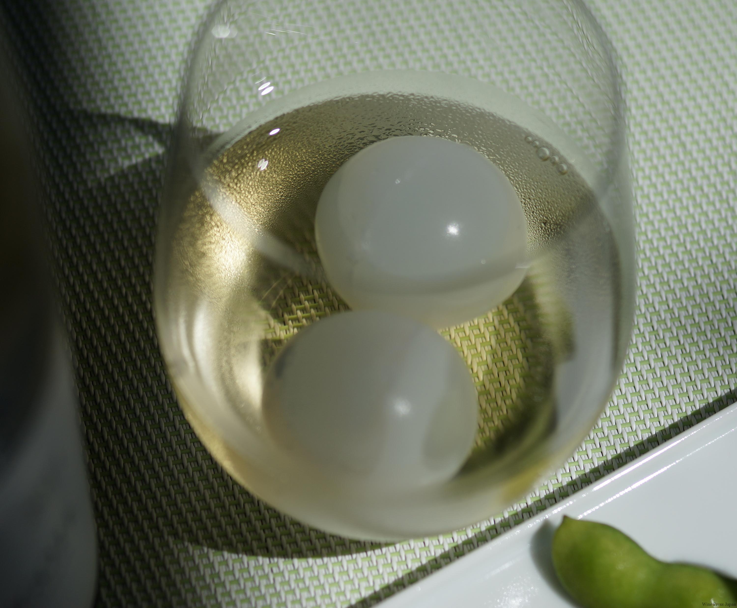 それから、食欲を湧かせてくれるきれいな酸をより楽しむために、グラスにドリンククーラーを入れてみました。液体が薄まらない氷です。暑い時期は、すぐにグラスの中のワインの温度が上がってしまいます。なるべく低い温度を保ちながら飲むほうが、酸を美味しく感じ、爽快感を満喫できると思います。