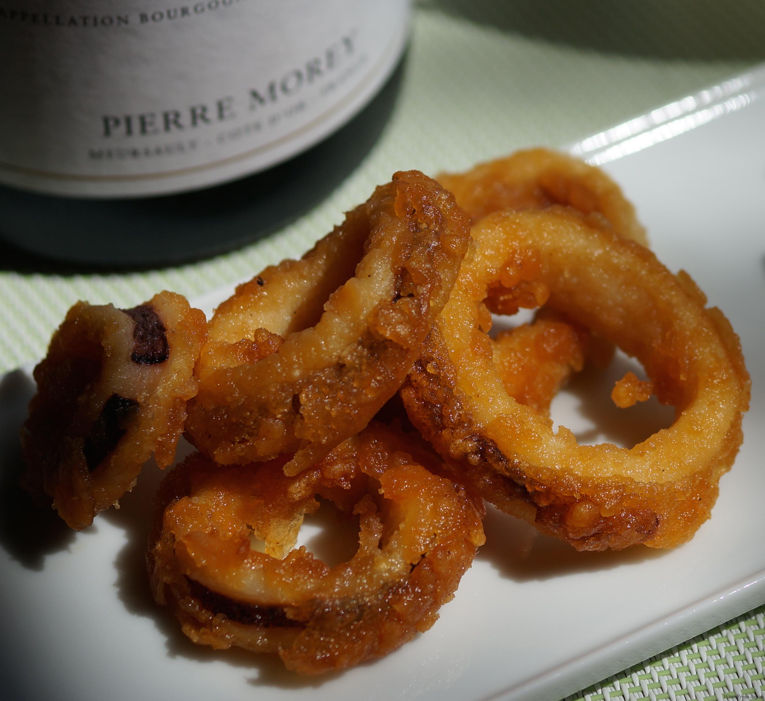 ちゃんと料理をするならば、グレープフルーツを使ったドレッシングをかけた蒸し鶏のサラダや、ワカサギのような小魚のフライなど、よいと思います。でも、今日は楽チンおつまみということで、たいていのスーパーマーケットの惣菜コーナーで見つかる、枝豆&イカリングです。枝豆とは互いに甘味を引き出し合う関係で、イカリングの場合にはフレッシュ感を加えて後味を爽やかにさせてくれるので、どちらもよい相性です。