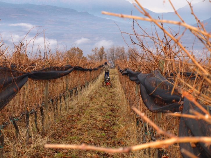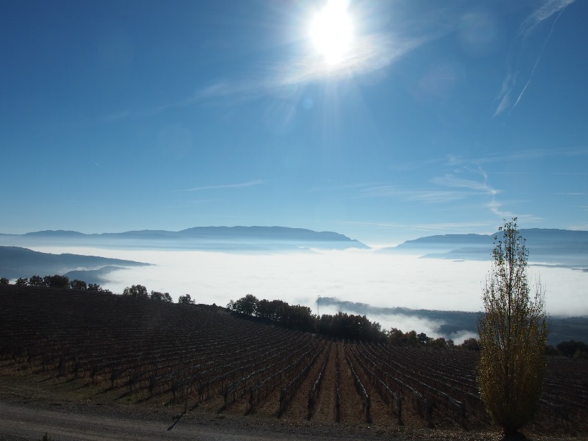 畑の下に霧が見えます。雲の上のブドウ畑ですよね。素敵な情景です。ただ、きれい〜!と、感動しているわけにはいきません。だって、ブドウは大変そうじゃありませんか。