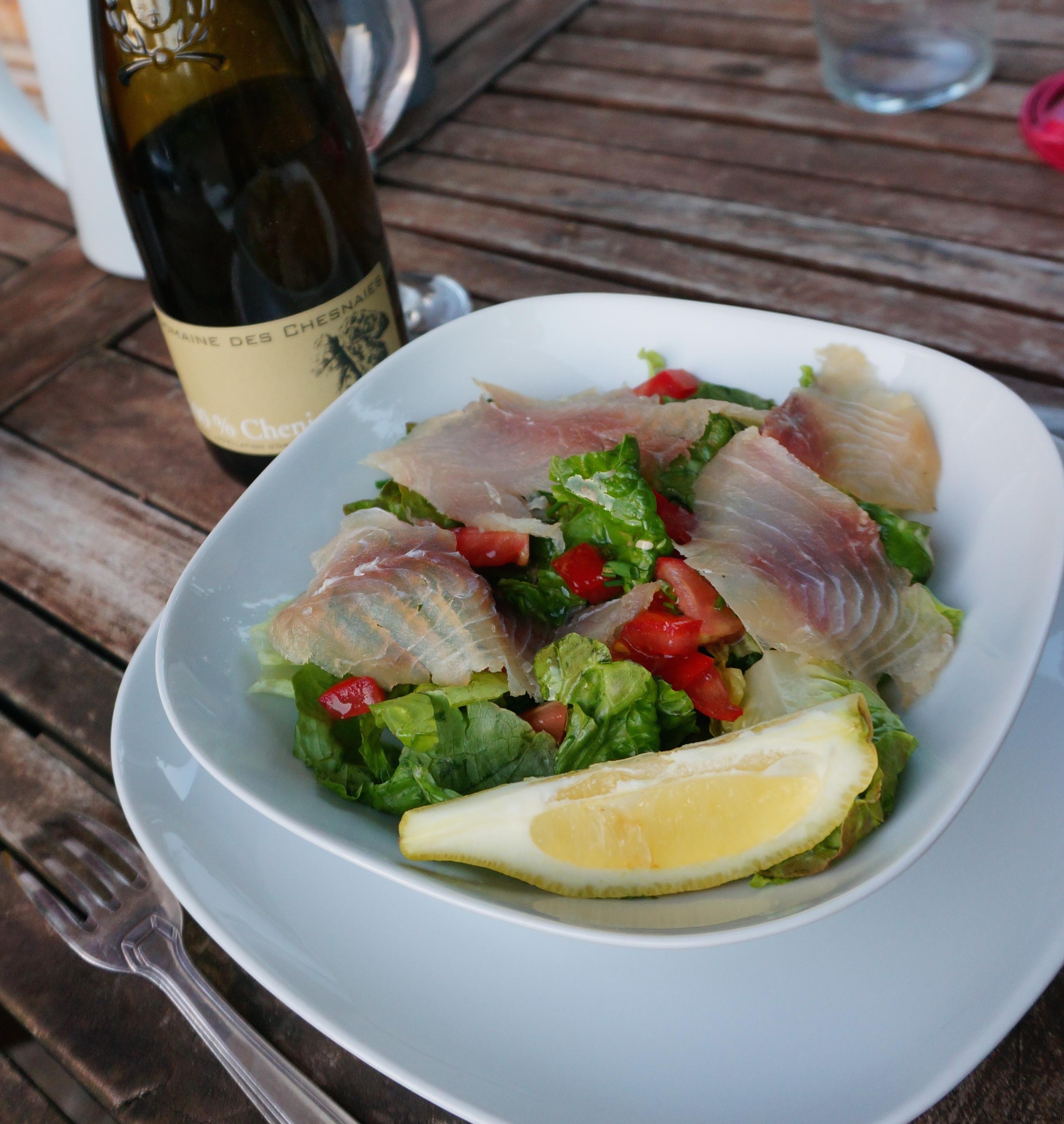 「ドメーヌ・デ・シェネ」は、ワイナリーを旦那様のオリヴィエさんが、ベッド&ブレックファーストの4部屋だけの宿泊施設を奥様のカトリーヌさんが運営しています。ワイナリー取材だけでなく、そこで1泊させていただいたのですが、特別に夕食をご馳走になりました。レストランを経営していたというカトリーヌさんの腕前はさすがで、何を食べても美味しかったのですが、最後のデザートが忘れられない味でした。
