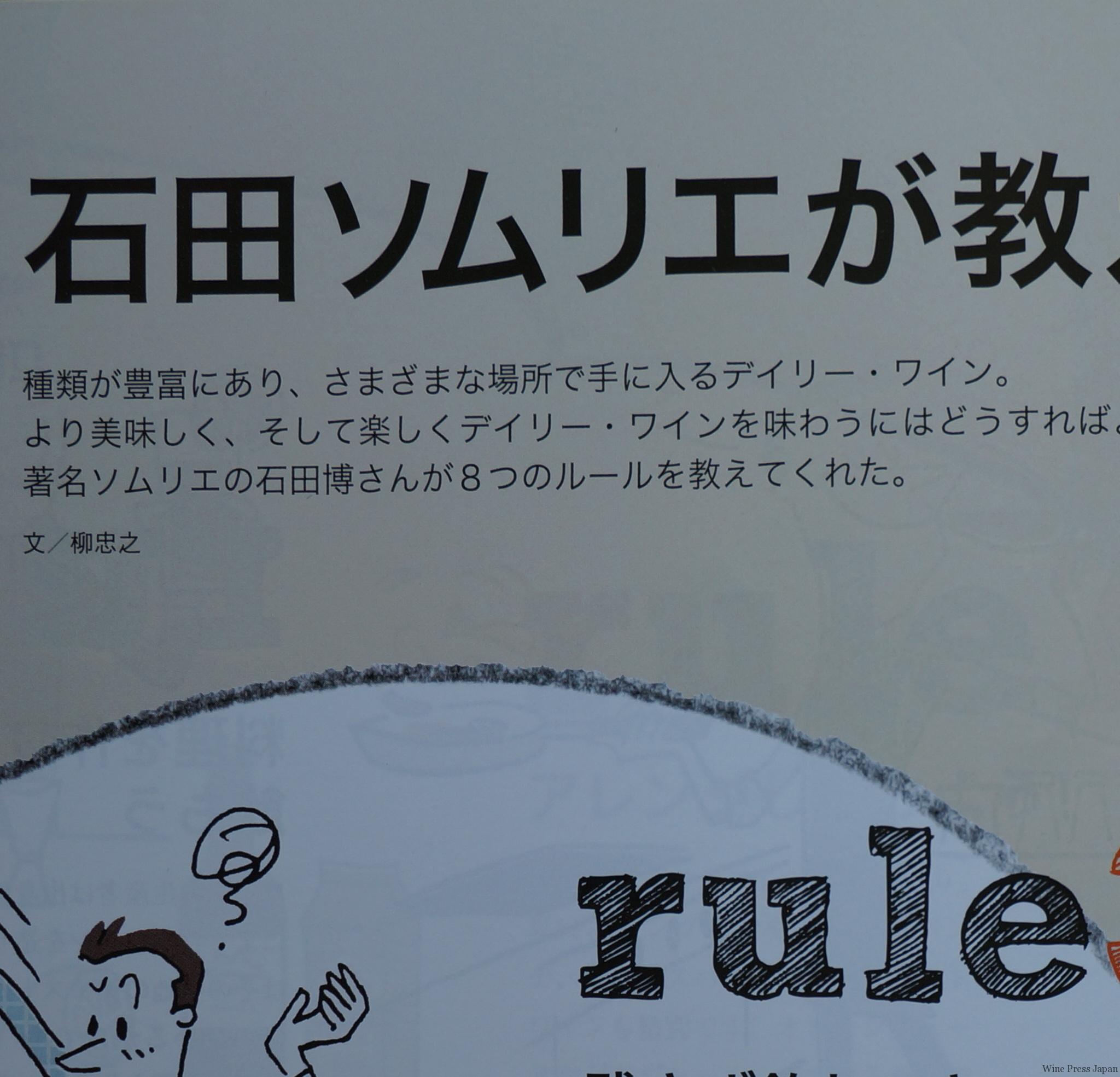 その他に、何となく人に聞きにくいような疑問に答えるQ&Aやワイン用語のページもあります。デイリーワインを飲むためにはどうしたらよいのか、有名なソムリエの石田博さんが指南してくれたり。美しい柳沼淳子さんが、山梨県の勝沼のワイナリーを訪問して日本ワインの紹介をしてくれたり。ワインと料理の組み合わせの新しいコツが披露されていたり。小山薫堂さんがデイリーワインについて語ってくれたり。