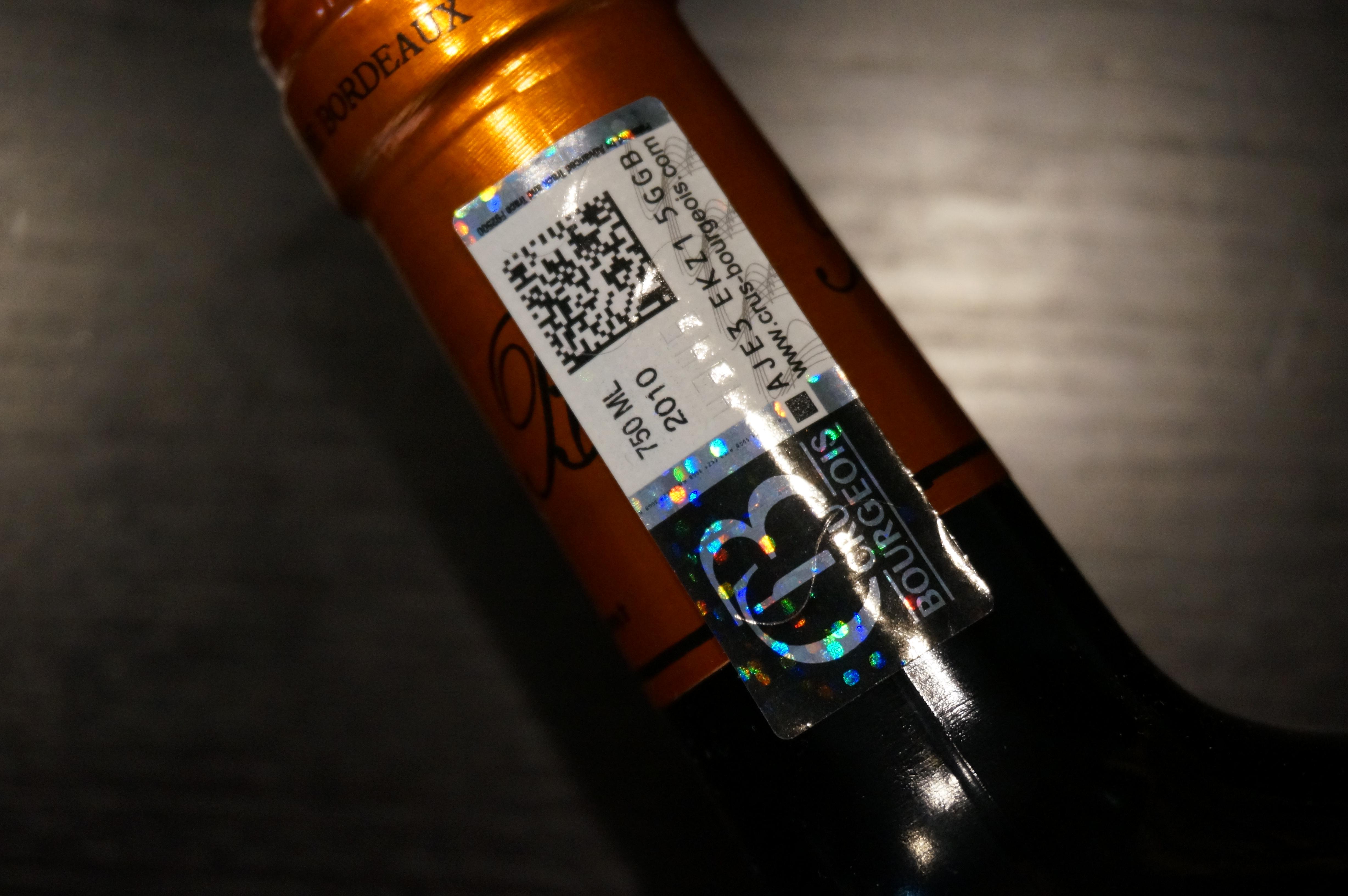 - クリュ・ブルジョワの認定ステッカー。この二次元コードをスキャンすると……。