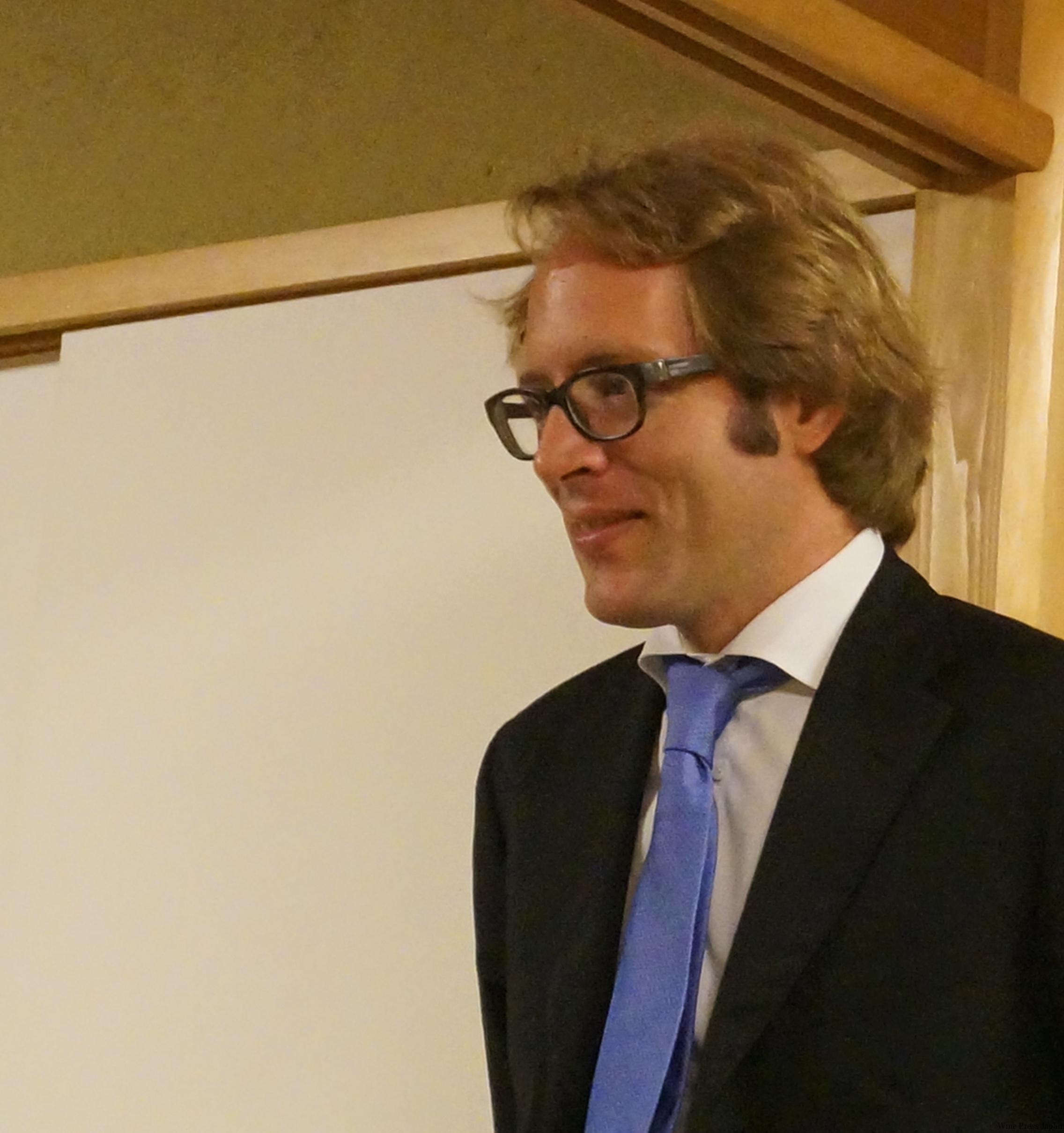 翌日からシンガポールへ、というクロヴィス。メゾンや銘柄の説明も終わったので、ネクタイをはずしてリラックス。手にしているのは、薔薇色の輝くコント・ドゥ・シャンパーニュのロゼ2005年。