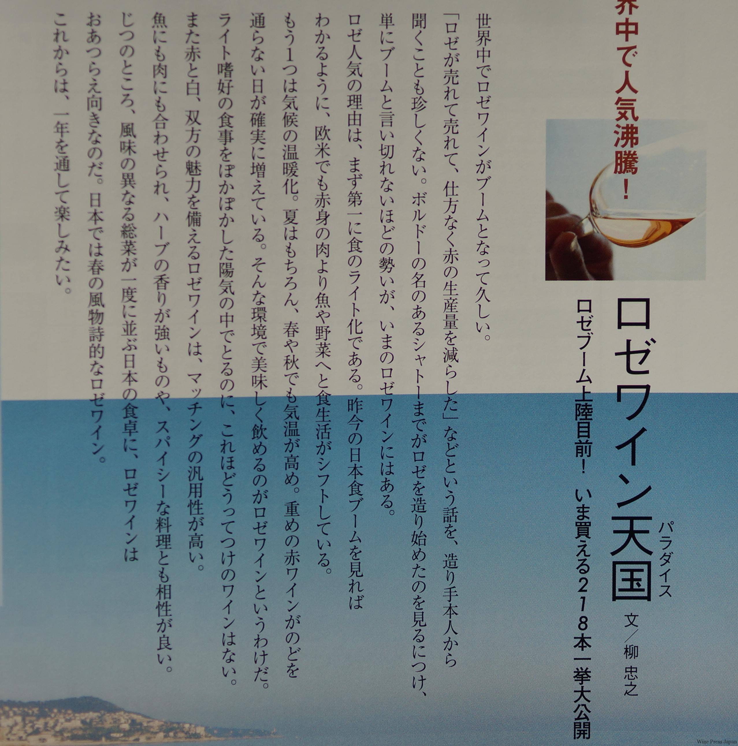 そしてもうひとつの目玉は、今世界中で人気が上昇しているロゼワインのカタログです。今、日本で買える218本が載っています。ロゼの色合いも様々なので、見ているだけでも楽しいかもしれませんね。