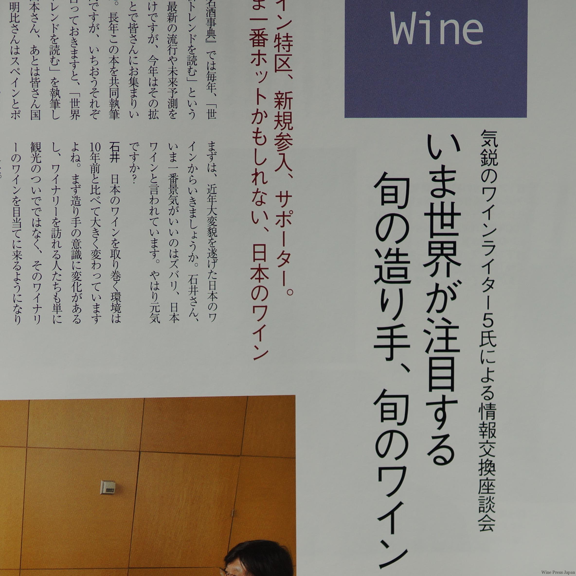 ワインについては、ワインジャーナリスト5名による座談会。明比淑子さん、石井もと子さん、柳忠之さん、山本昭彦さん、そして私・名越康子が、世界各国のワインの現場で起こっている事柄について情報交換しています。