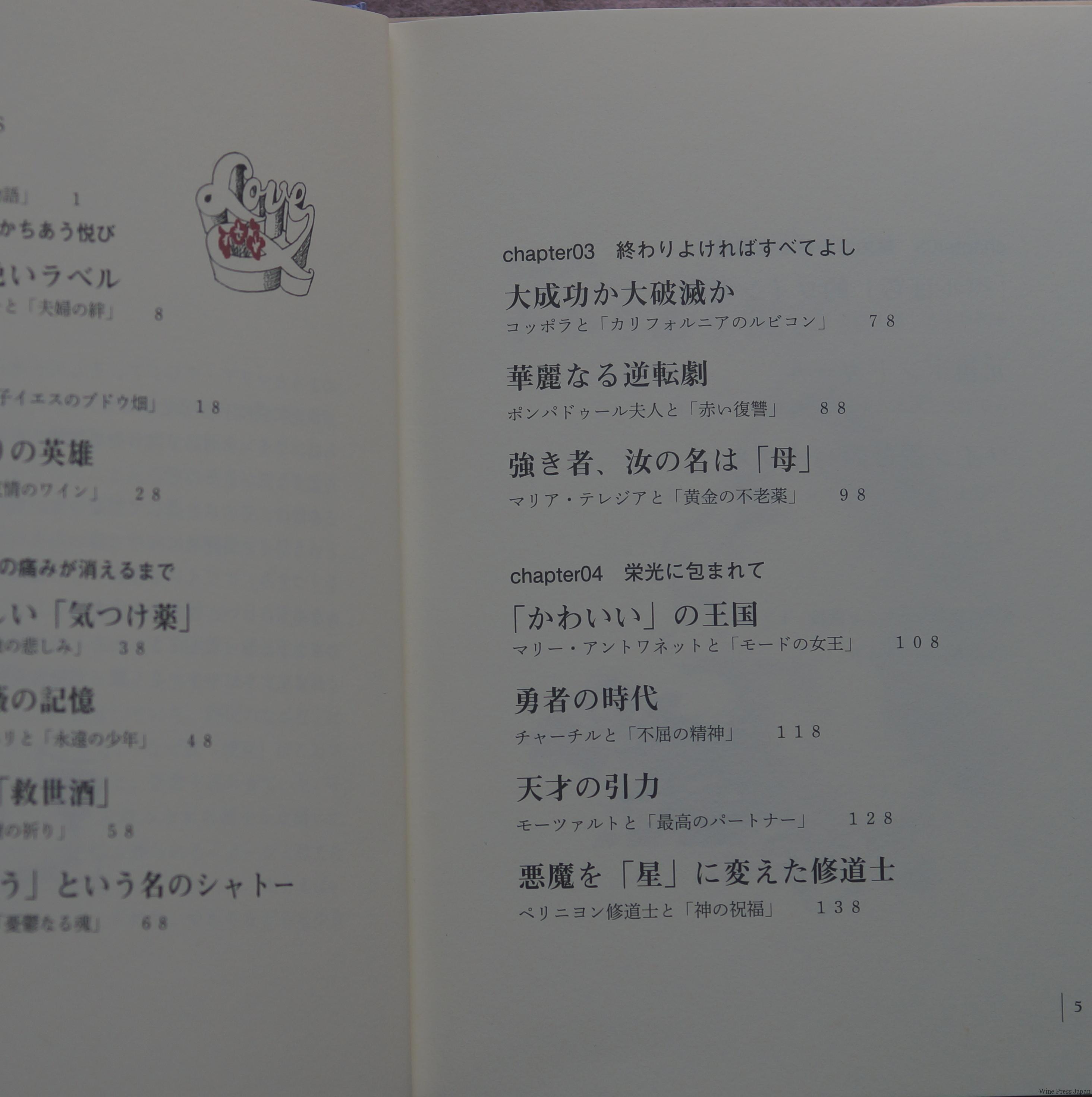 登場するのは歴史的人物たち。グレース・ケリー、ルイ14世、ナポレオンにシャネル。それに、マリア・テレジアア、マリー・アントワネット、モーツアルトの話もあります。フランスを中心とした、貴族、音楽、芸術の世界を垣間見ながら、彼らが愛したワイン、シャンパーニュの出番が来るのを待ちます。
