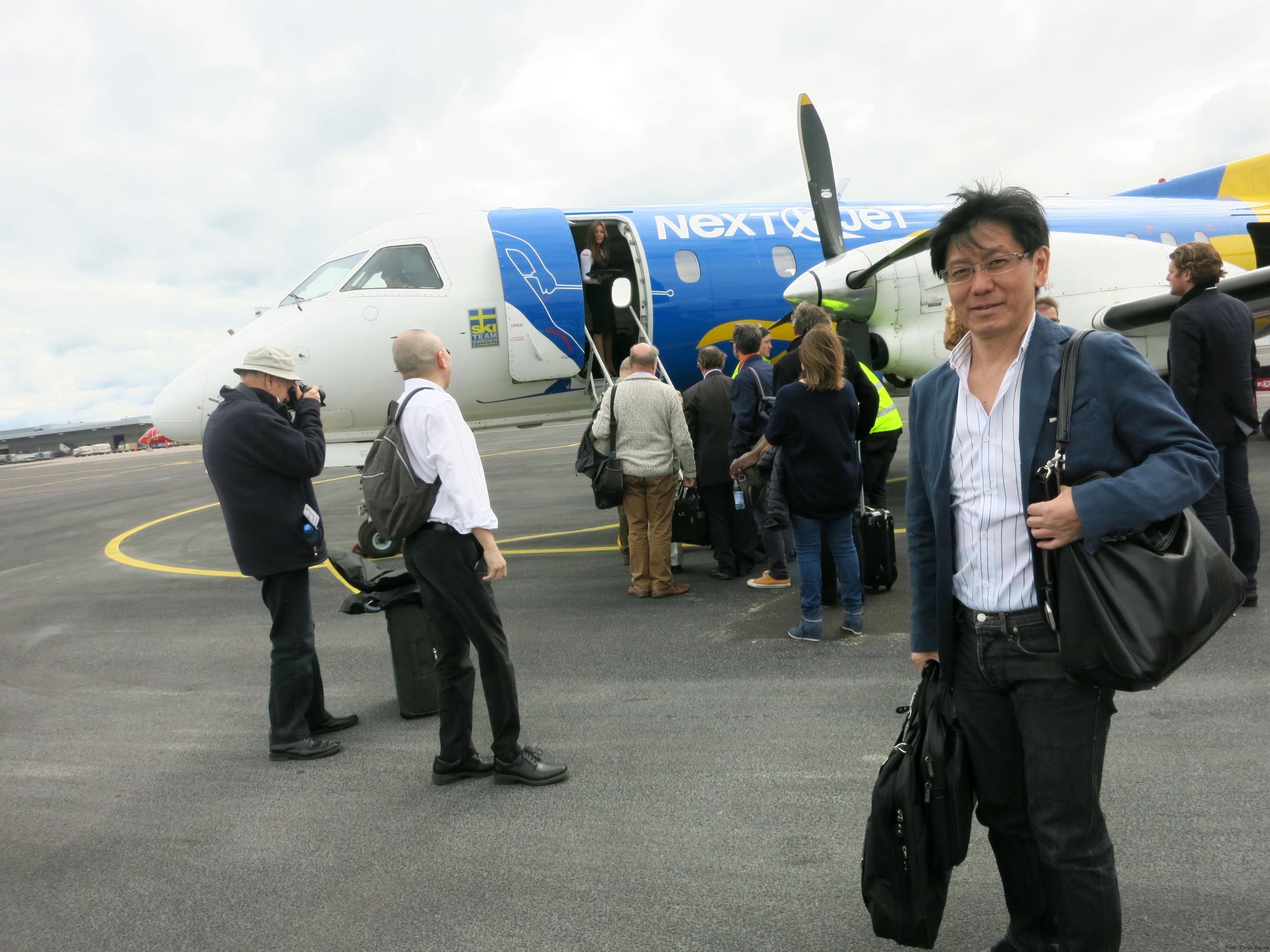 - チャーター機に乗り、ストックホルムからオーランド諸島の主都マリエハムンへ。