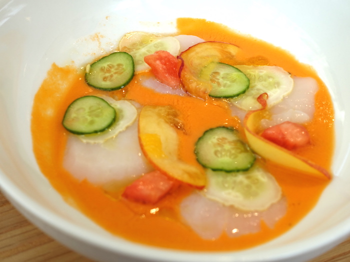 メニューは、スターター4種、1皿目、2皿目、3皿目が各5種ずつ。順に取ってコース仕立てにしてもいいし、一品だけつまんでもいい。こういう自由なメニューの組み立てを許してもらえる気楽さもいい。